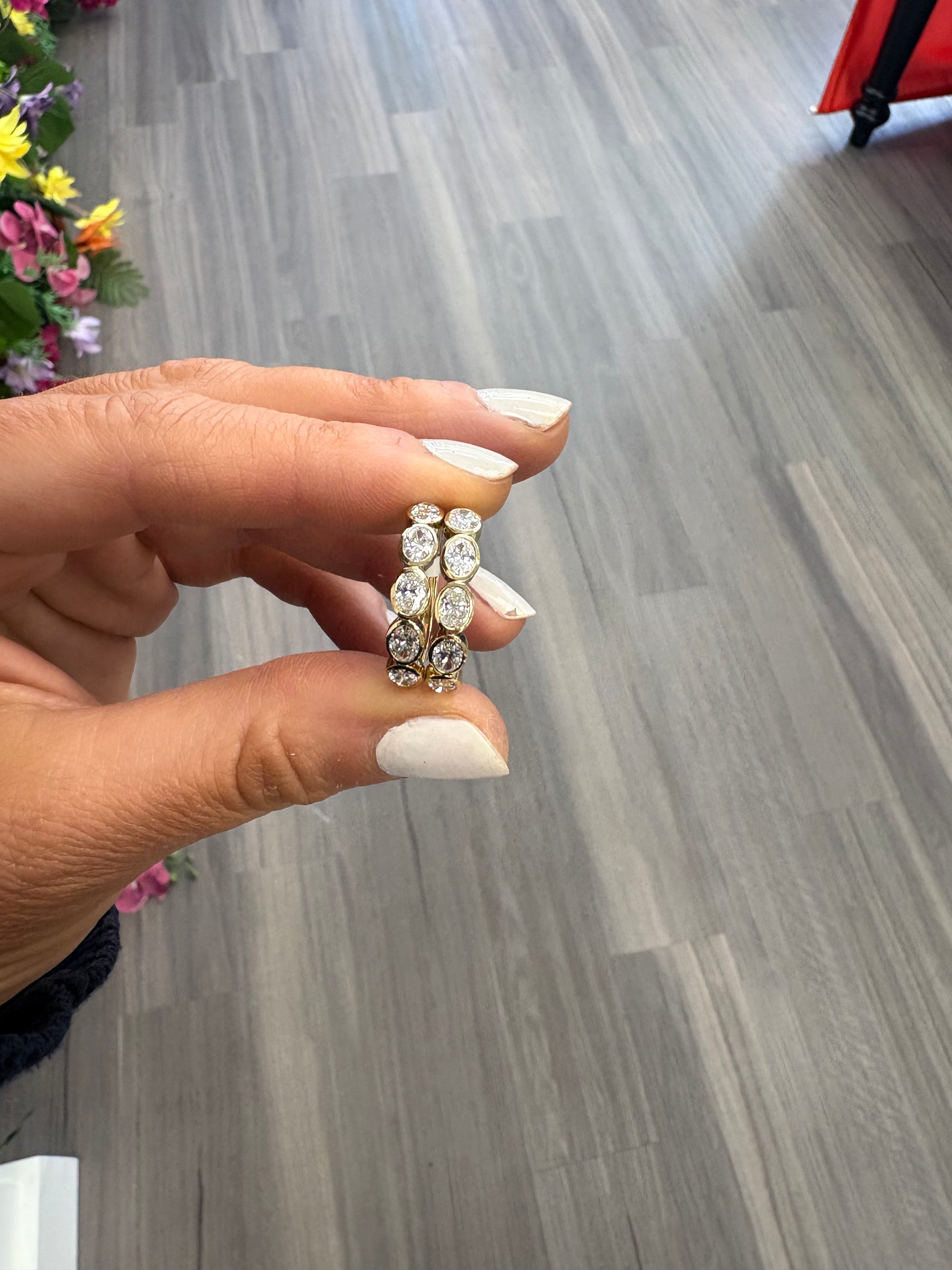 2.15 cttw Bezel Oval Halfway Hoops