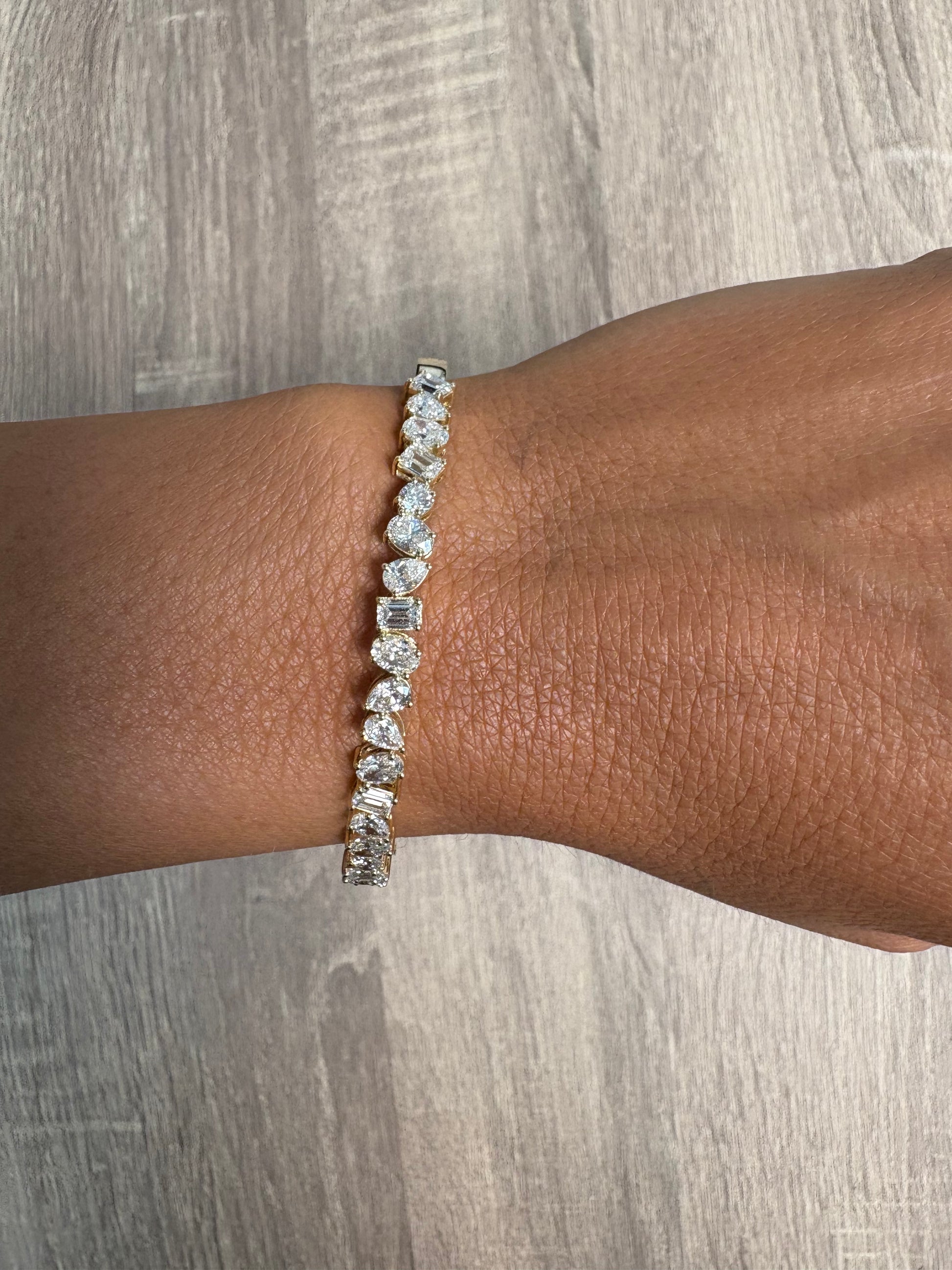 4 cttw Mixed Shape Yellow Gold Halfway Bangle